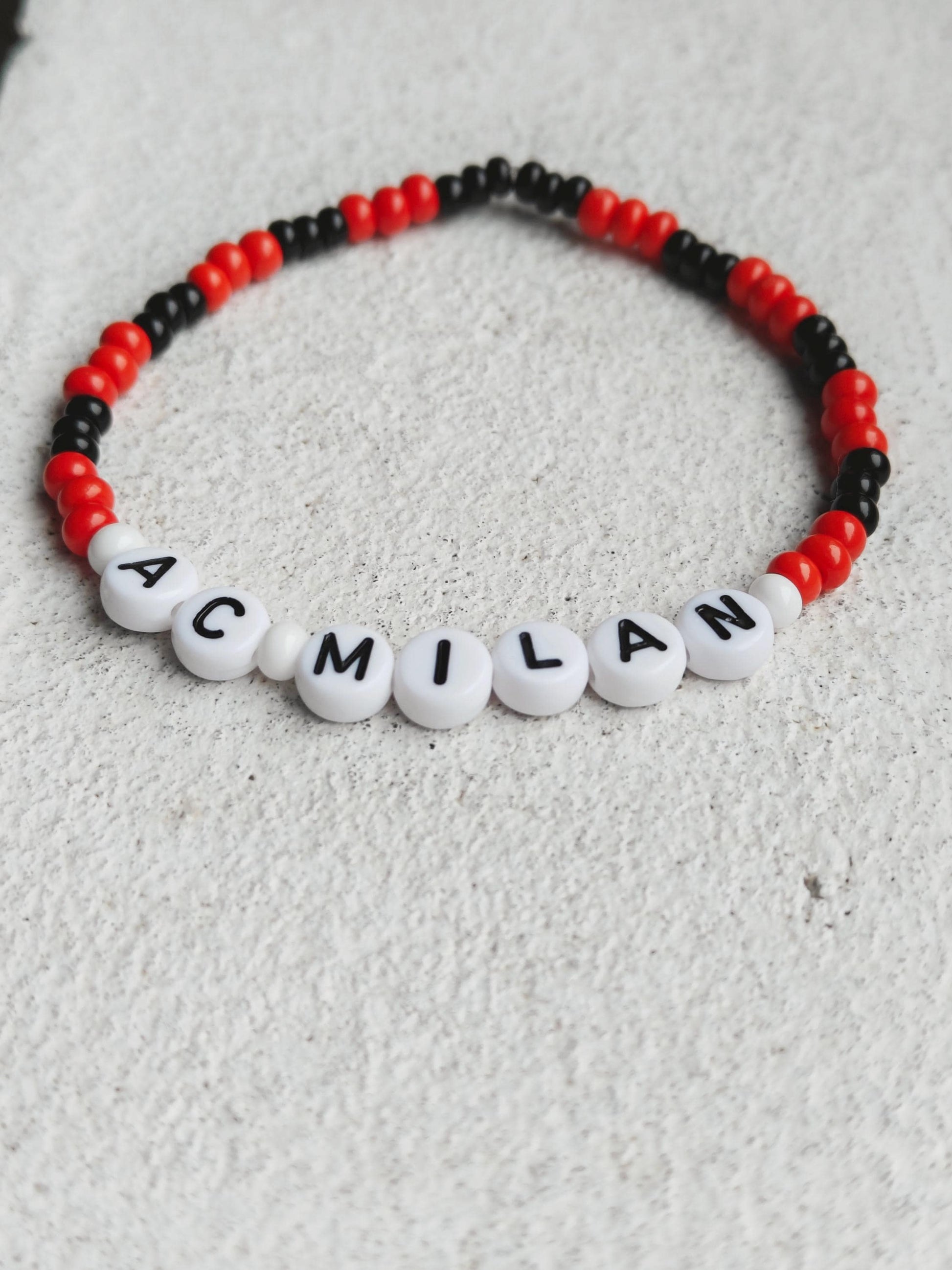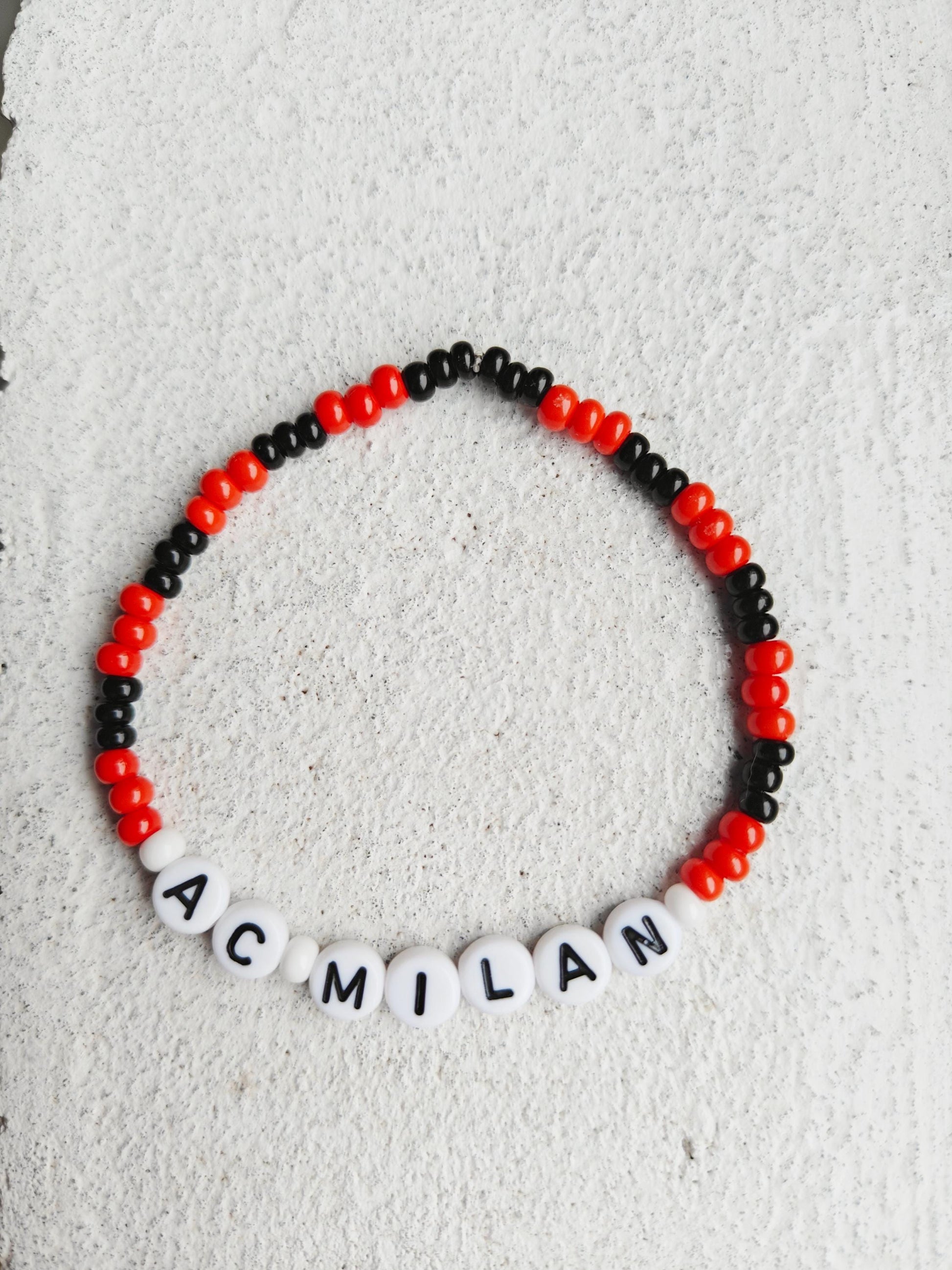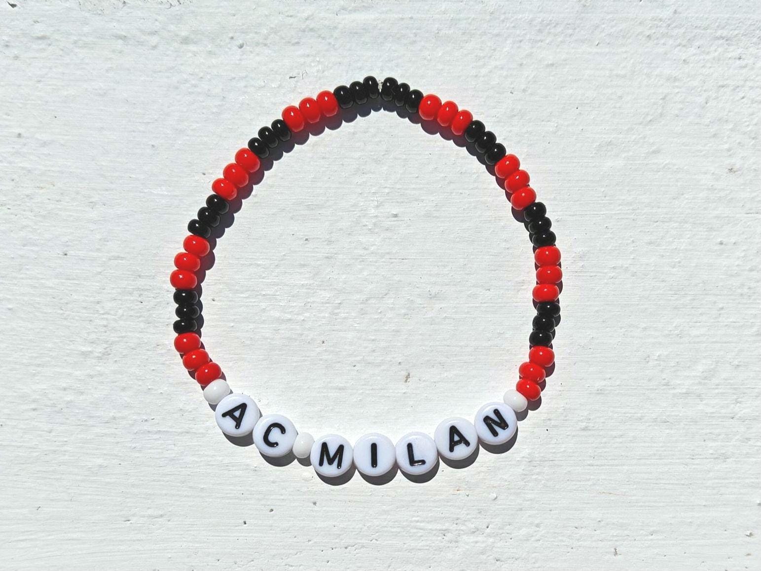 Support AC Milan (ACM) in the Italian league with this glass seed bead bracelet. The absolutely iconic colors of red black and white are key in this one.