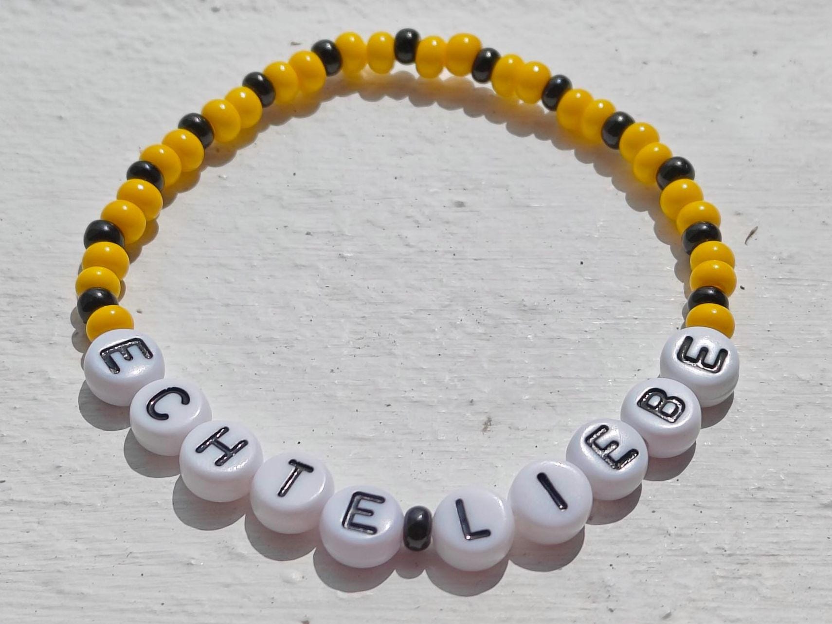 Celebrate your passion for Borussia Dortmund with this handmade beaded bracelet featuring the iconic phrase "ECHTE LIEBE" – meaning "True Love" in German. Crafted with alternating black and yellow beads, this stylish piece pays tribute to the heart and soul of BVB fans around the world.