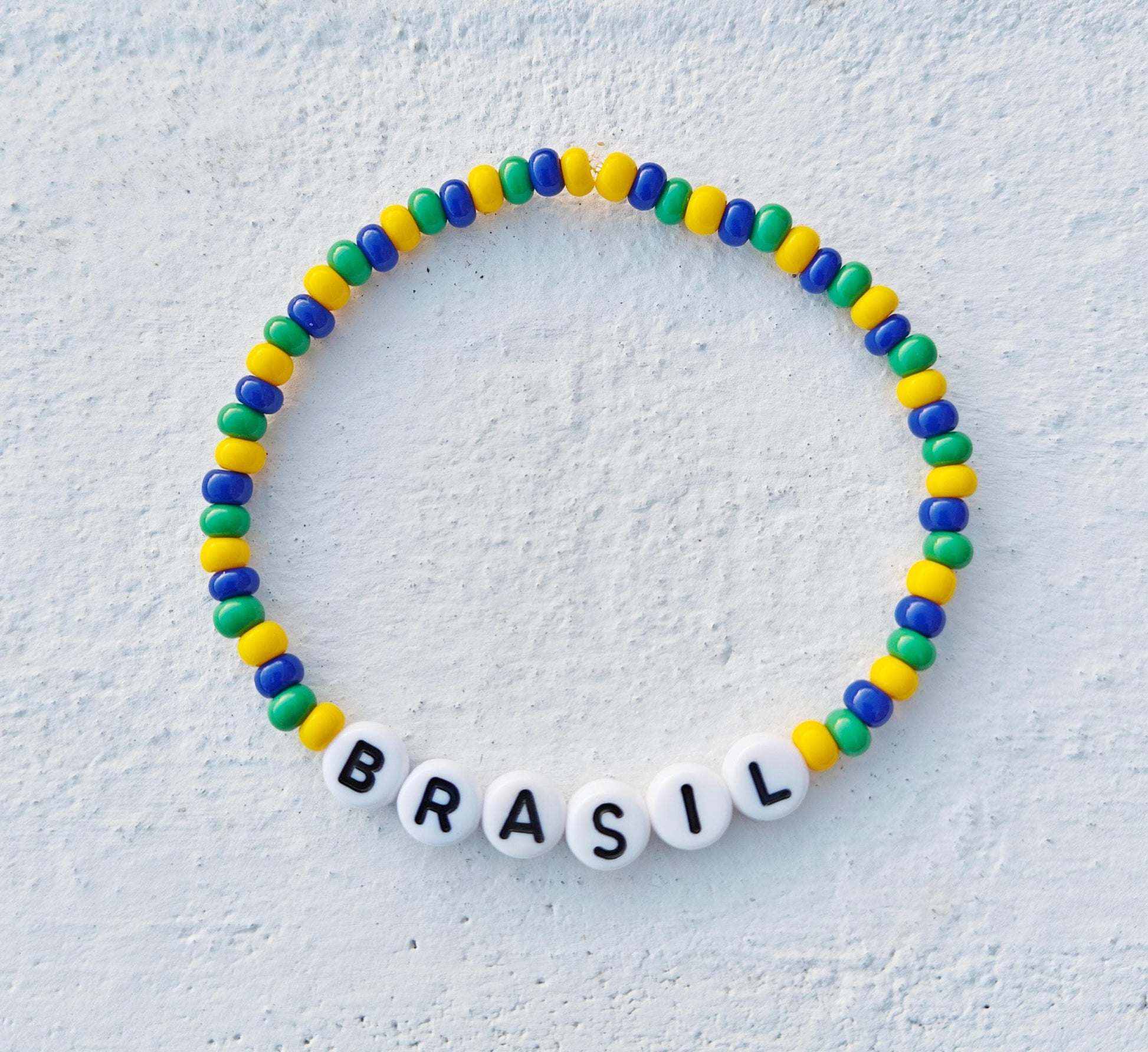 Show off your Brazilian pride with this vibrant handcrafted bead bracelet, designed in the iconic blue, green, and yellow colors of Brazil. Featuring the word “Brasil” in bold lettering, this bracelet is the perfect accessory for football fans, sports enthusiasts, or anyone who loves Brazilian culture and style.
