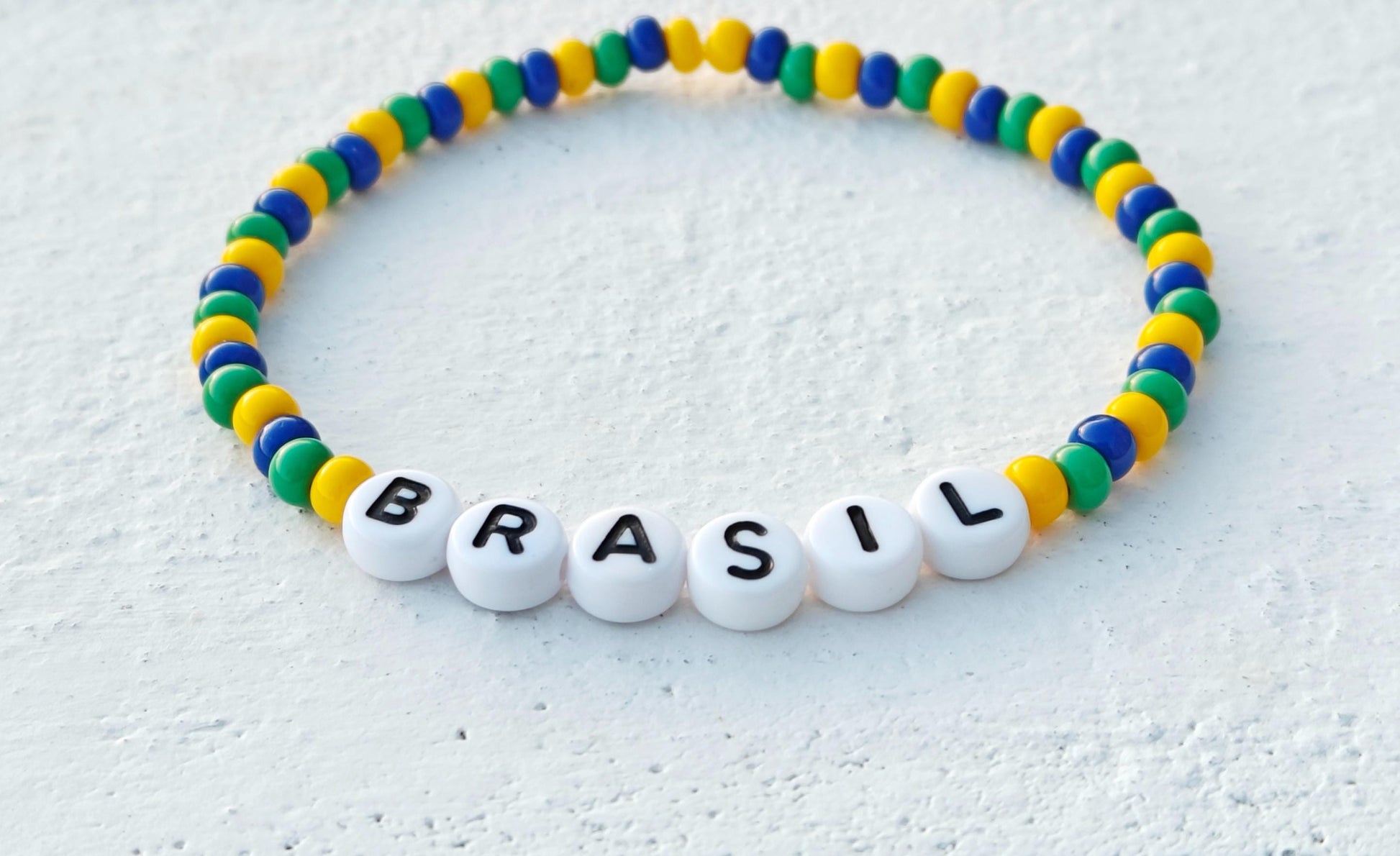 Vibrant Colors: Blue, green, and yellow beads representing Brazil’s national colors.