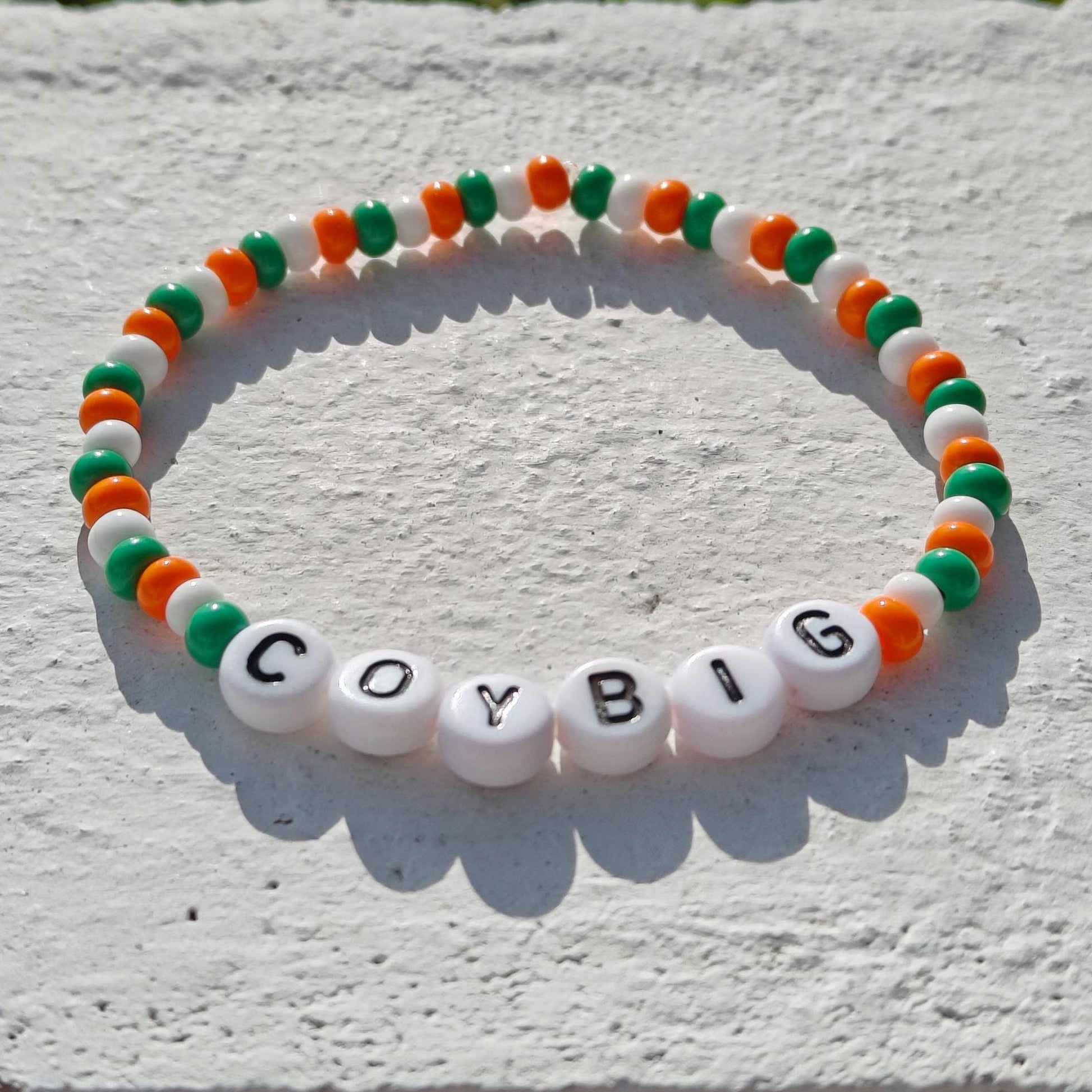 Show your Irish pride with this handmade COYBIG bracelet, featuring the classic green, white, and orange of the Irish flag. Whether you’re cheering for the Boys in Green at a match or just want to represent your roots, this elastic beaded bracelet is the perfect way to say “Come On You Boys In Green!”