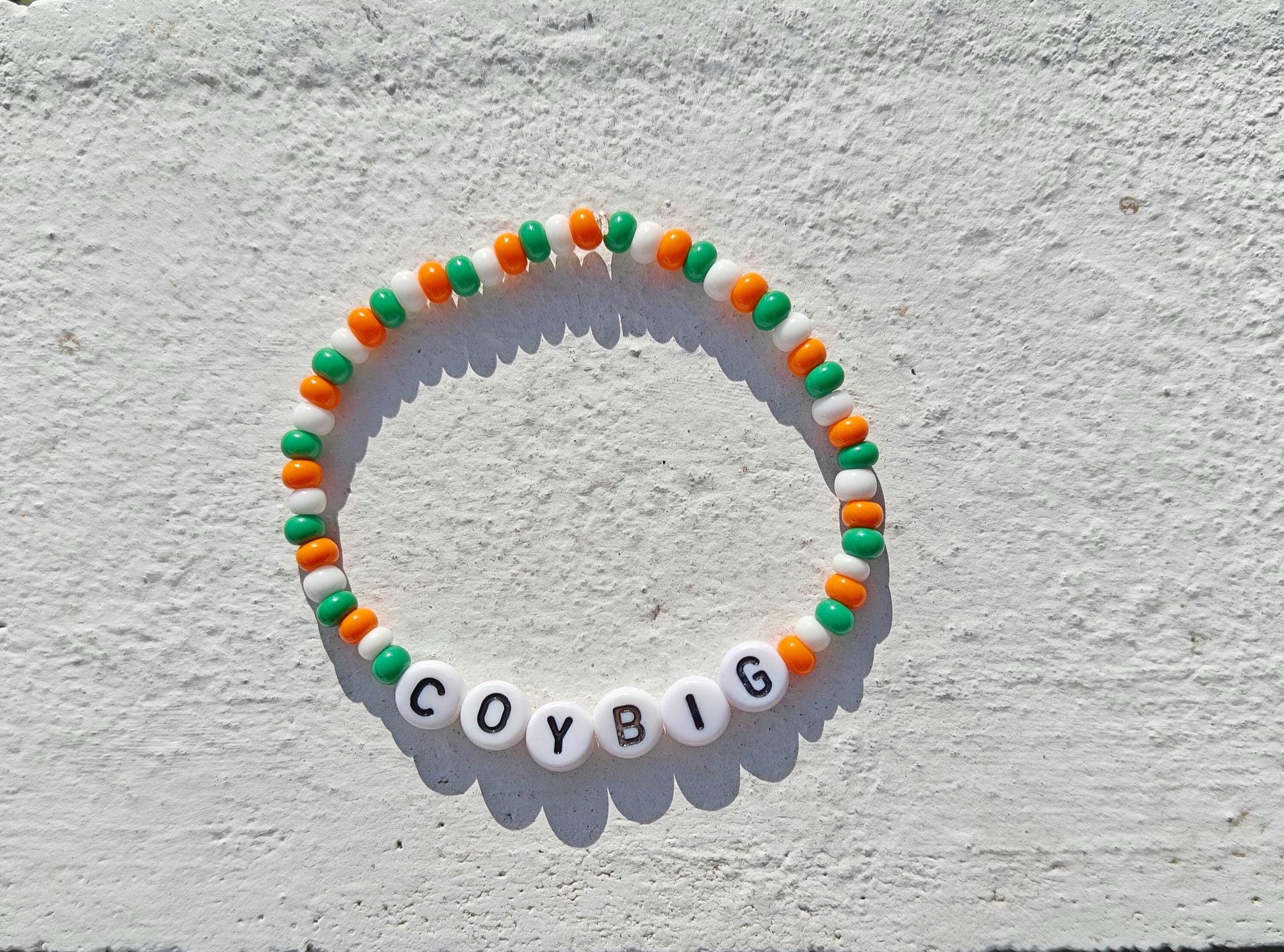 COYBIG Bracelet – Handmade Ireland Football Fan Jewelry | Green, White & Orange Beaded Stretch Bracelet | Gift for Irish Soccer Supporters