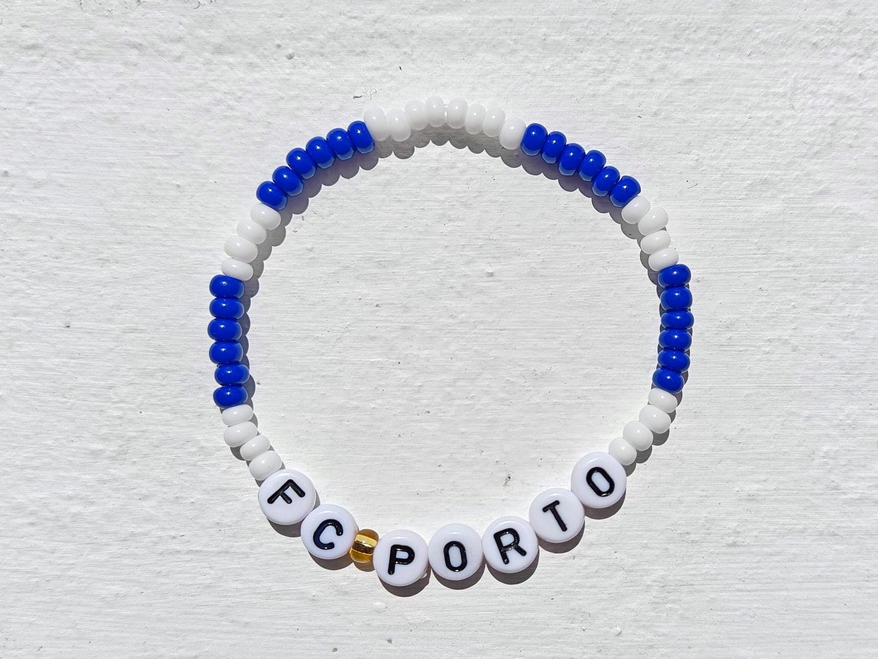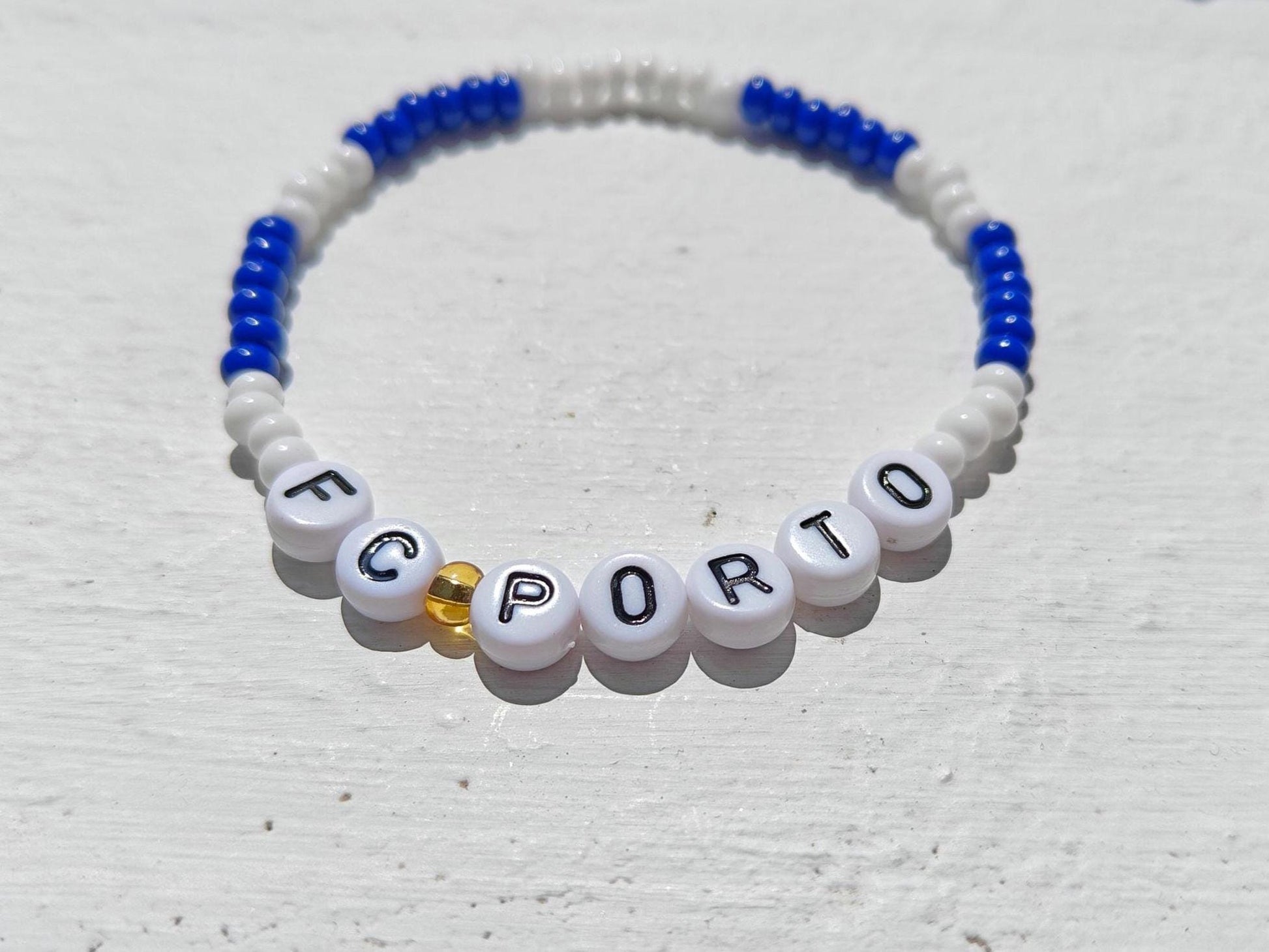 Show off your football pride with this handmade FC Porto Beaded Bracelet! Featuring a vibrant combination of blue, white, and a touch of gold, this bracelet is crafted with high-quality seed beads and letter beads that spell out "FC PORTO" — a perfect tribute to your favorite team. Whether you're at the stadium, out with friends, or just adding a sporty touch to your everyday look, this bracelet is a stylish and spirited accessory for any true FC Porto fan. Lightweight, elastic, and comfortable to wear all day long. It is the perfect accessory for any loyal Futebol Clube do Porto supporter!