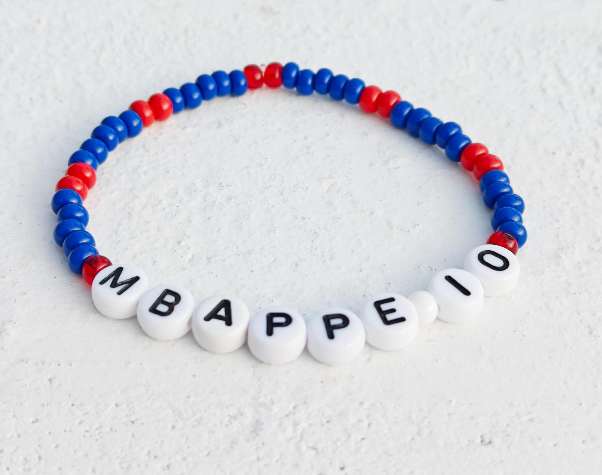 Celebrate Kylian Mbappé and the French national team with this striking **Mbappé 10 France bead bracelet**. Featuring bold blue and red beads, this bracelet captures the essence of the French flag, symbolizing the team's passion, power, and pride. Designed with a special focus on Mbappé’s iconic number 10, it’s a perfect accessory for any football fan or Mbappé supporter. The vibrant blue and red colors represent the energy and strength of France’s national football team, making this bracelet not just a stylish addition to your wardrobe, but also a symbol of your dedication to the game. Crafted with high-quality beads, this bracelet adds a sporty and fashionable flair to your everyday look, while celebrating the remarkable talent of one of football’s brightest stars ✨