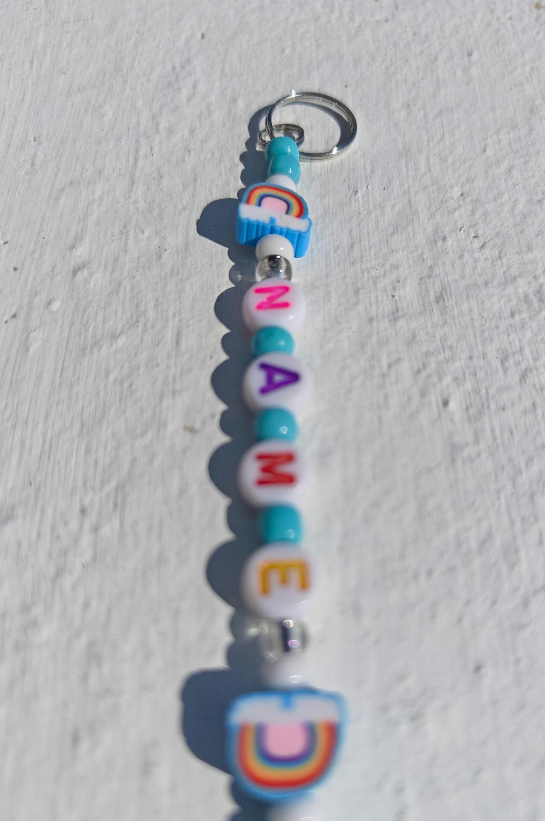 Personalized Fun Rainbow Beaded Name Keychain – Custom Letter Keyring Gift for Kids, Teens, or Party Favors – Handmade Accessory